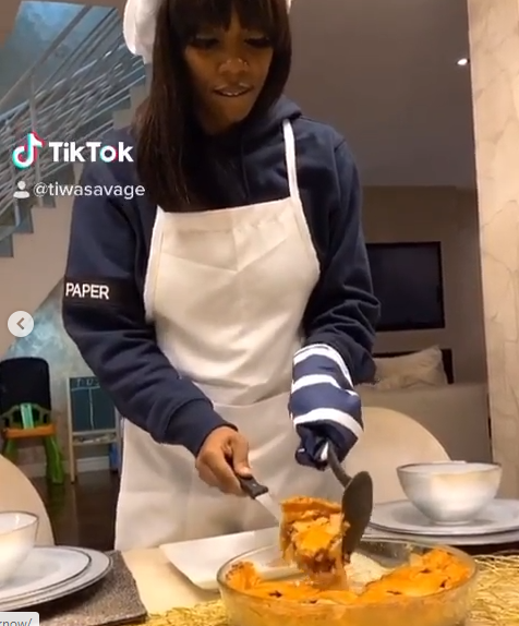 Tiwa Savage had continued displaying her culinary skills since the lockdown began in Lagos, Nigeria.
