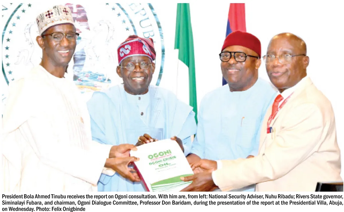 THE Federal Government took steps closer to the restart of oil exploration in Ogoniland on Wednesday, following the receipt of the report of the Ogoni Dialogue Committee by President Bola Tinubu at the Presidential Villa, Aso Rock, Abuja.