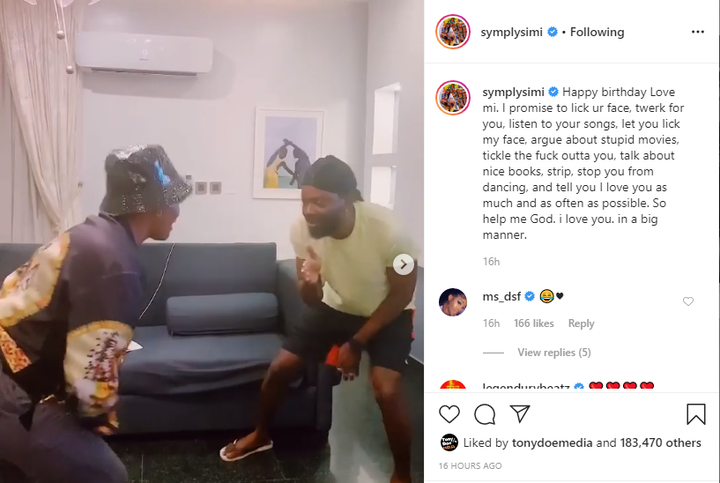 Simi made the new promise to her husband as he turned 33 on Tuesday, January 28, 2020.