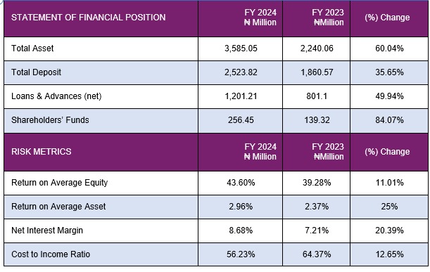 The Managing Director/CEO of the Bank, Mr. Moruf Oseni stated that the strong 2024 FY performance stems from the commercial bank’s focus on strong strategy execution in the key areas of risk management, customer relationship management and digital banking.